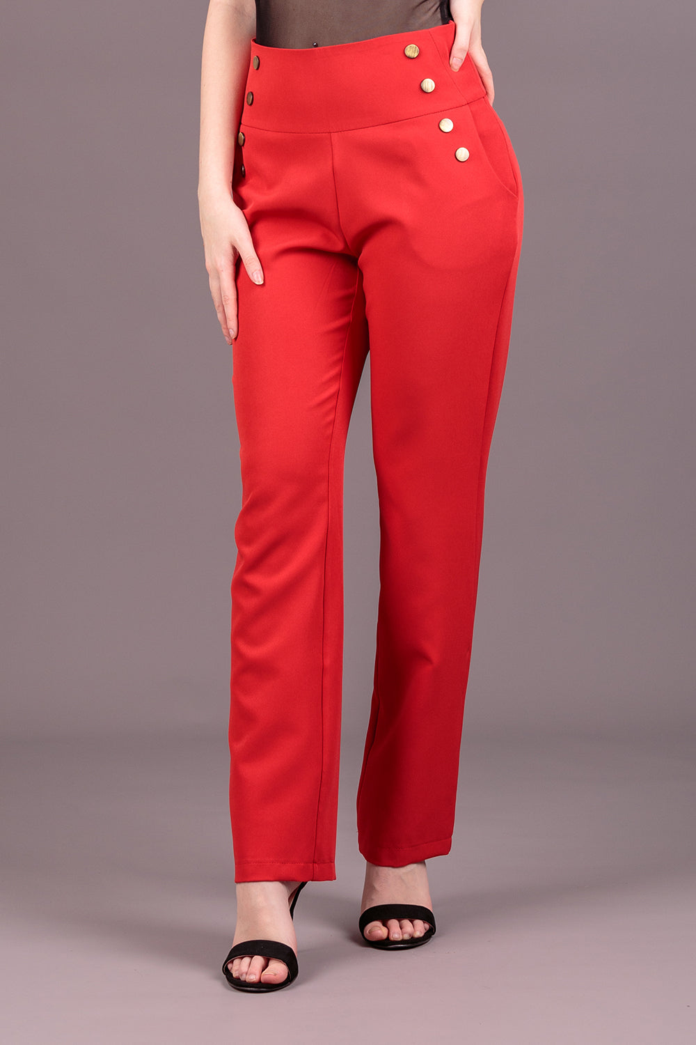 Regular price $79.95Power dress in our red Ella High Waisted Pants! These wide leg beauties with sailor-inspired button-front design, offer a unique take on a polished pant for a chic, modern professional style! Pair yours with pumps and tailored jacket for a power look!